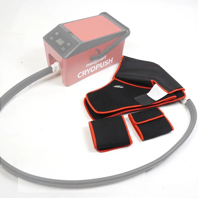 FROST tækið samanstendur af aðalstýrieiningu og stillanlegum umbúðum sem eru sérhönnuð fyrir ákveðin líkamssvæði (t.d. ökkla, hné, öxl). FROST tækið býður upp á bæði kæli- og þrýstings meðferð.