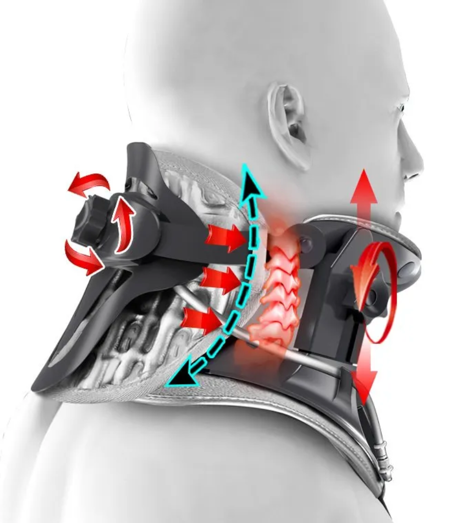 Háls-tog tækið er hannað til þess að viðhalda náttúrulegri kúrfu (20 gráður) í hálsinum ásamt því að létta á þrýstingi á diska / liði og þannig létta á verkjum strax.